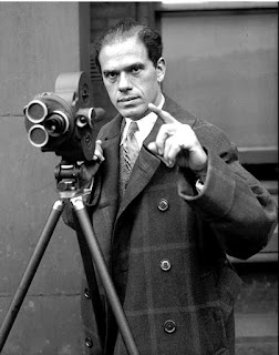 | Frank Capra with silent 35 mm. camera. |