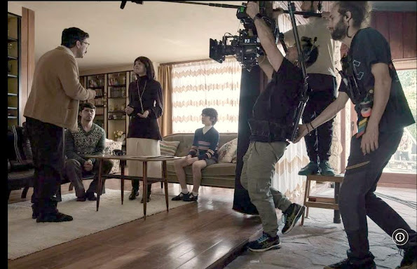 | Alvarro Morte, Javier Morgarde & Ana Rujas filming Medem's 8 |